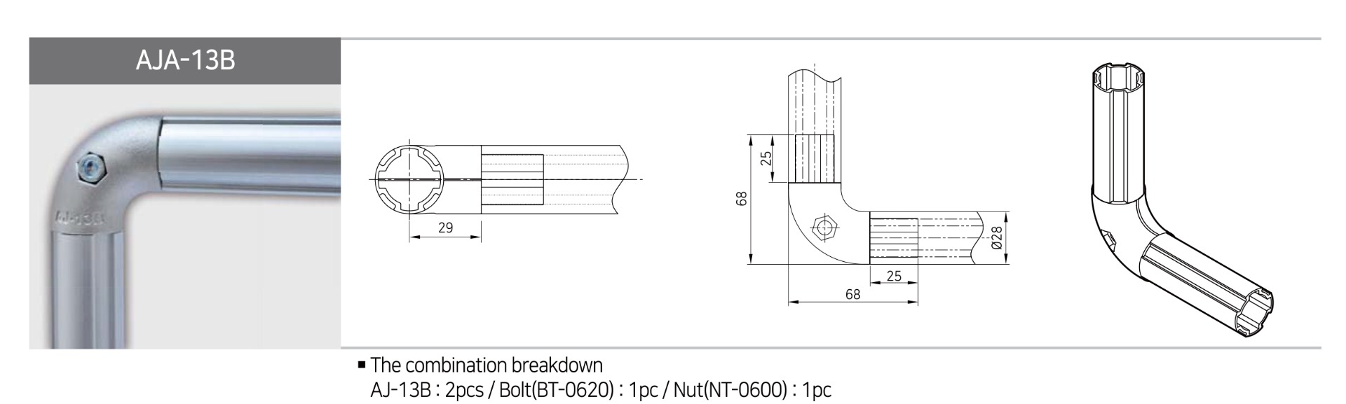 Connettore AJ-13B per tubi in alluminio anodizzato utilizzato per formare AJA-13B