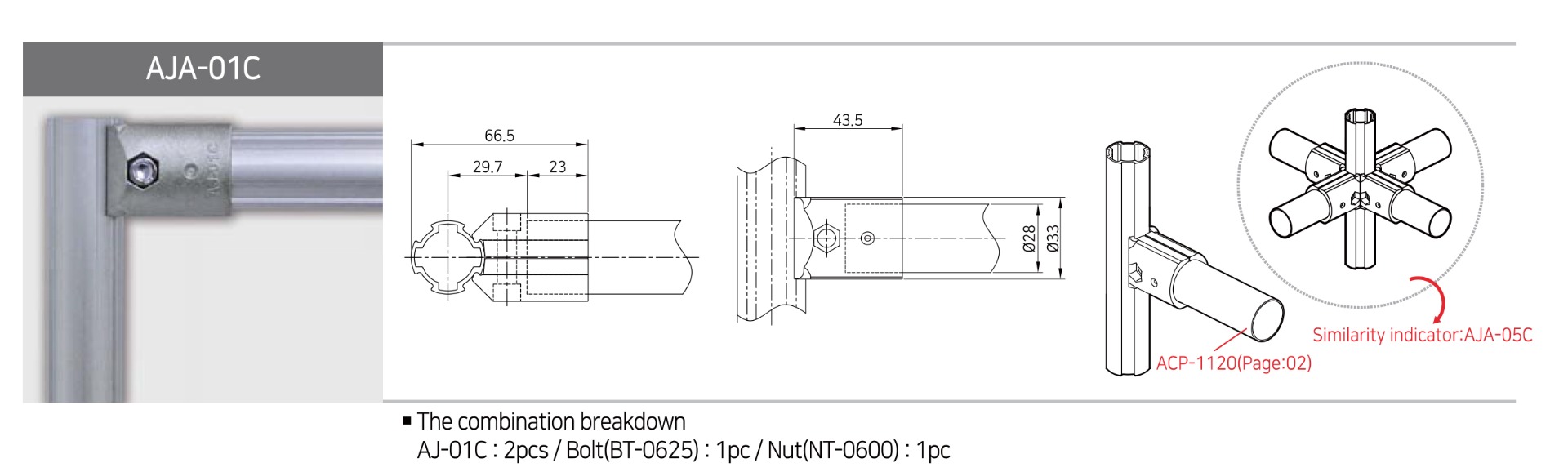 Connettore AJ-01C per tubi in alluminio anodizzato utilizzato per formare AJA-01C