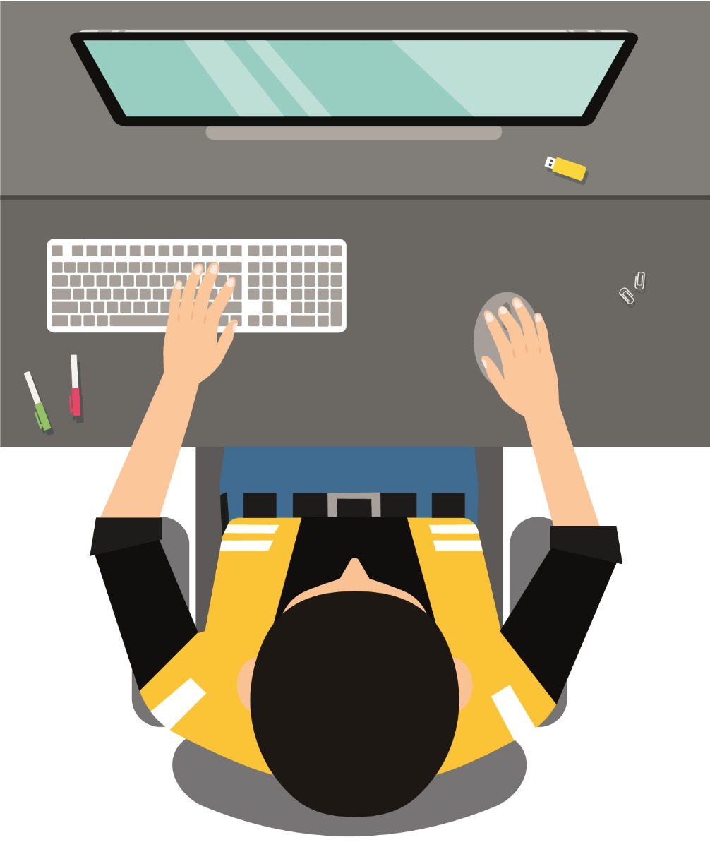 Quando si lavora con la tastiera, l'operatore dovrebbe essere seduto con la parte superiore delle braccia sospesa naturalmente dalle spalle. I gomiti devono essere piegati all'incirca di un angolo di 90 gradi quando le dita sono nella posizione di battitura sulla riga iniziale della tastiera. Questa postura consente alle braccia e ai polsi di essere mantenuti in una posizione naturale e rilassata che riduce lo stress fisico su muscoli e articolazioni.