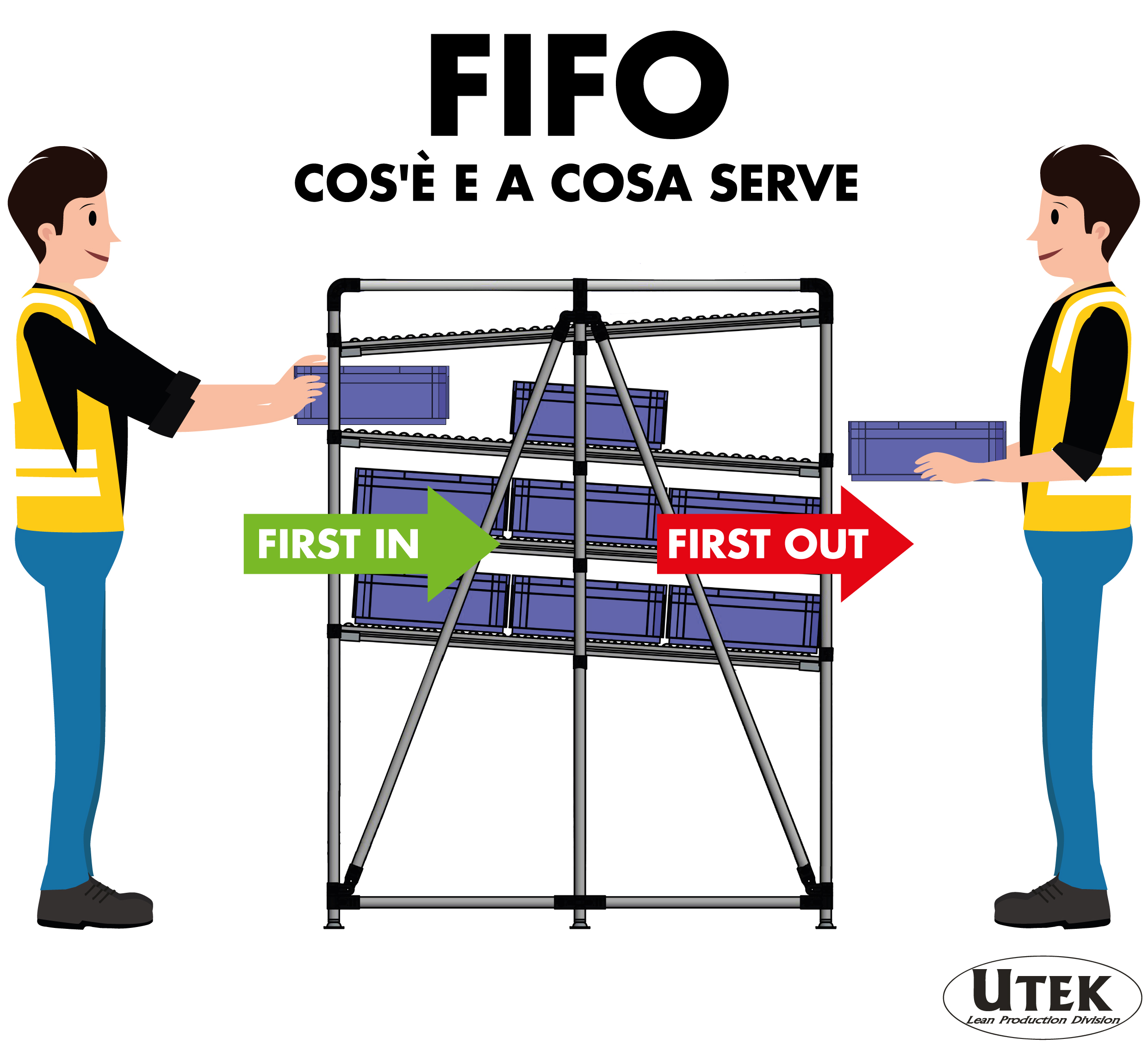 Si tratta di una metodologia di organizzazione del magazzino basato su un concetto chiaro e lineare: il primo che entra è il primo a uscire. Tecnicamente, dal punto di vista logistico, possiamo dire che rappresenta il termine razionale e più semplice da attuare per evitare il deterioramento e l'obsolescenza dei beni di scorta. Nella lean production supporta il concetto di lead time.