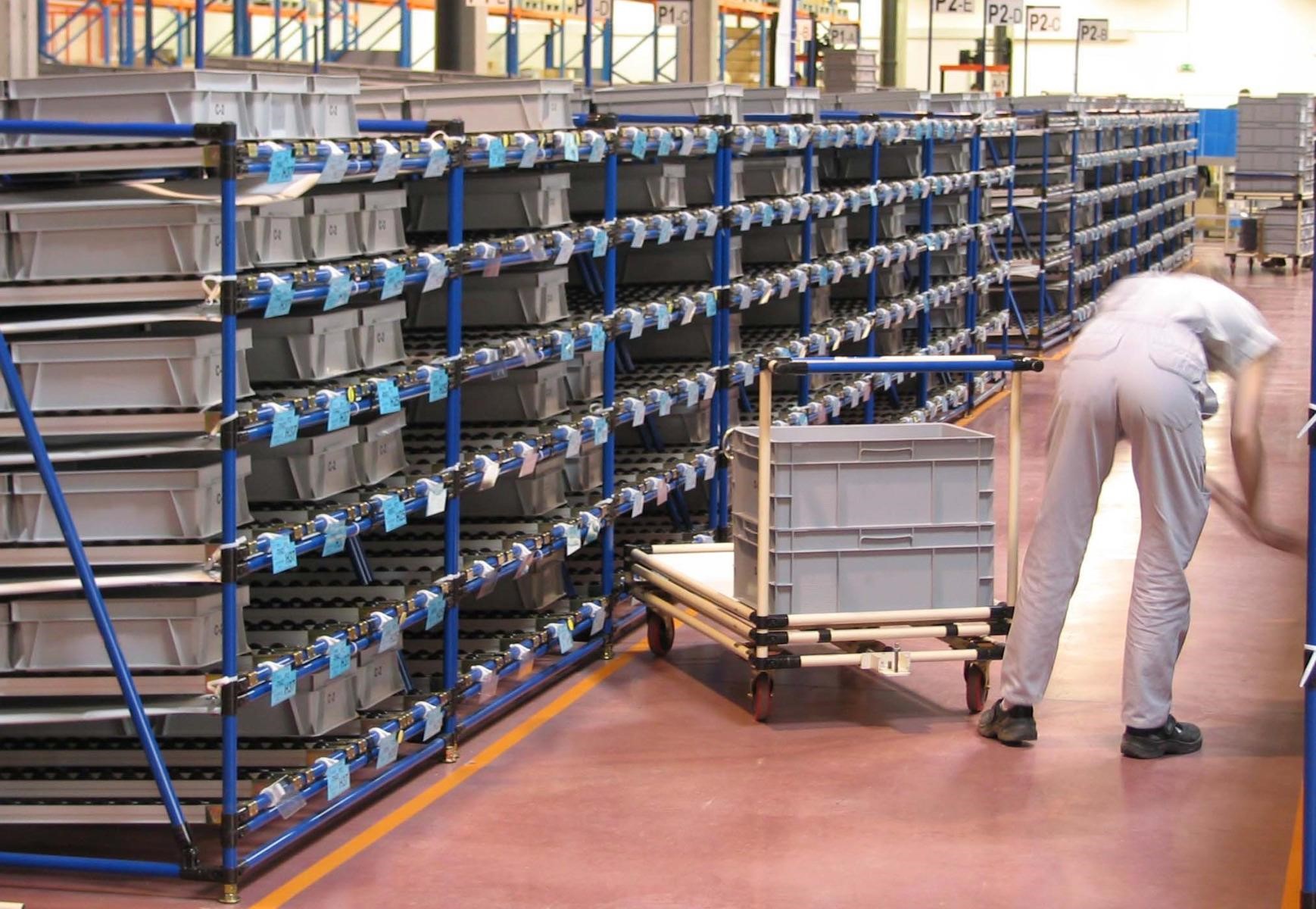 Questo passaggio consente di eliminare documentazione cartacea e burocratizzazione della logistica. Poi si procede con scaffalature leggere, modulabili e basate sul principio dello scorrimento. Si sfrutta la gravità per fare in modo che sia l'oggetto ad arrivare all'operatore.