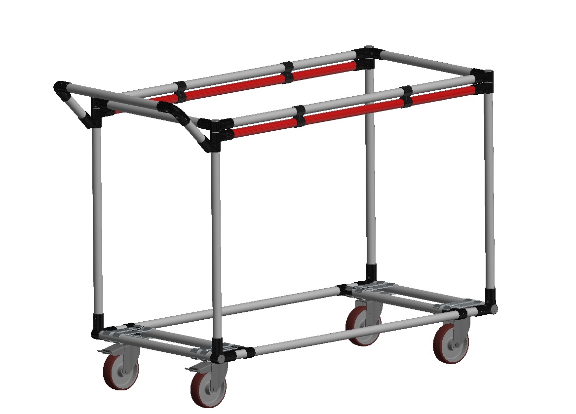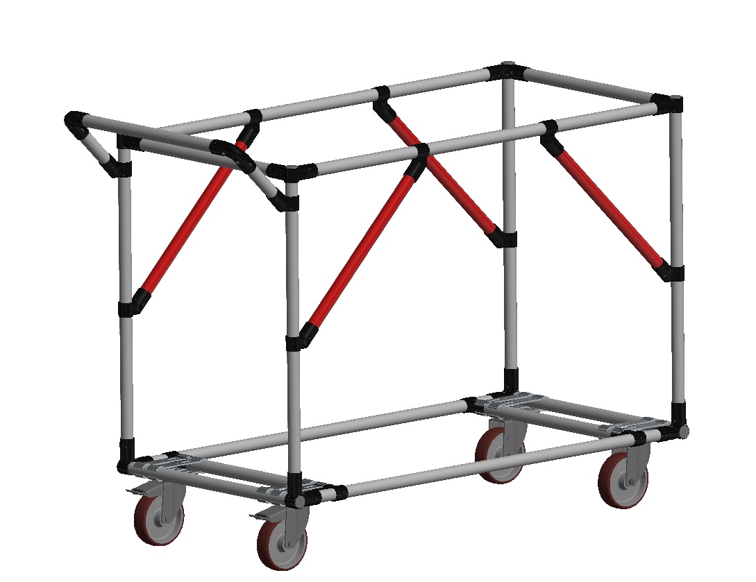Per migliorare la portata dei carrelli lean aggiungi diagonali di rinforzo per controventare la struttura tubolare per meglio distribuire il peso del carico. Utilizza giunti HJ-45 e HJ-7, saranno perfetti per i tuoi carrelli lean.