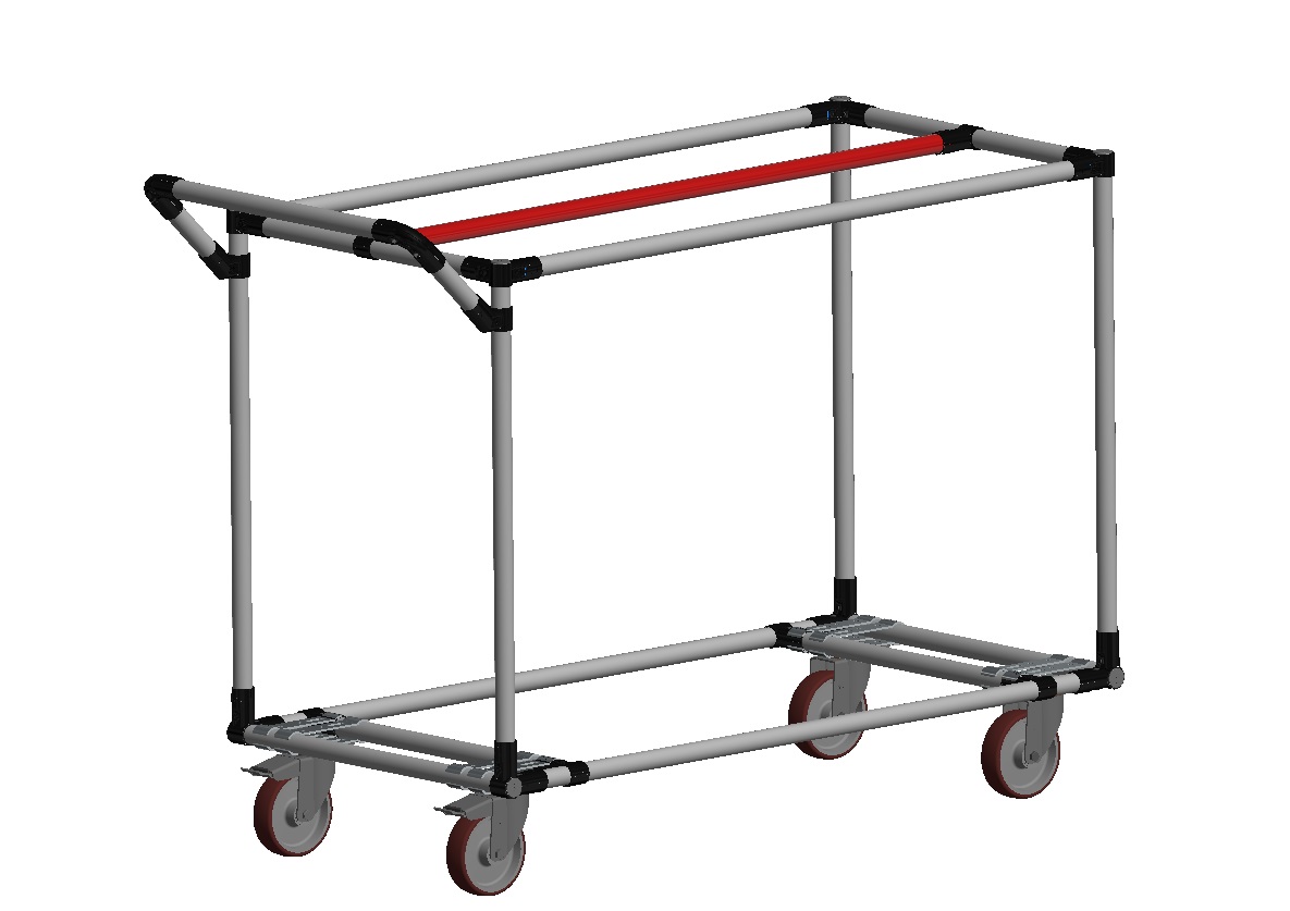 Inserisci un secondo tubo di supporto in parallelo per aumentare notevolmente la capacità di carico dei carrelli lean da usare in azienda. In questo caso ti consigliamo di utilizzare e sfruttare al meglio i giunti HJ-1 e HJ-8.