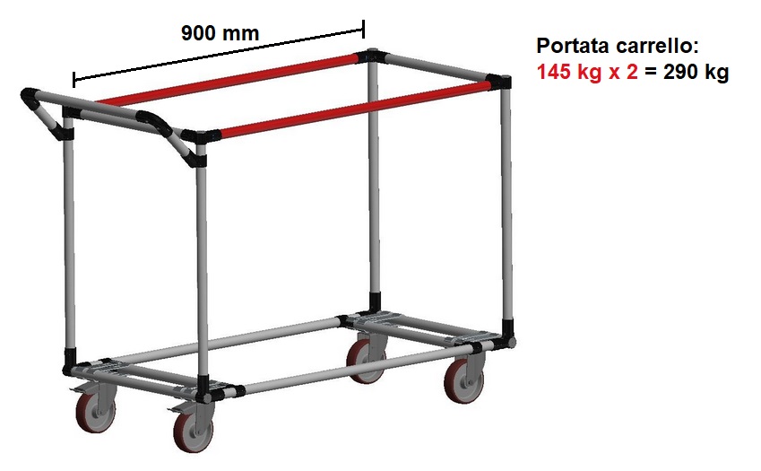 Non progettare strutture modulari lean troppo grandi, ma utilizza moduli con dimensioni ridotte per una migliore portata. In caso di carrelli con lunghezza superiore a 1,5mt ti consiglio di aggiunge oltre ai montanti di rinforzo verticale anche 2 ruote fisse centrali per aumentare la portata e per migliorare la mannegevolezza.