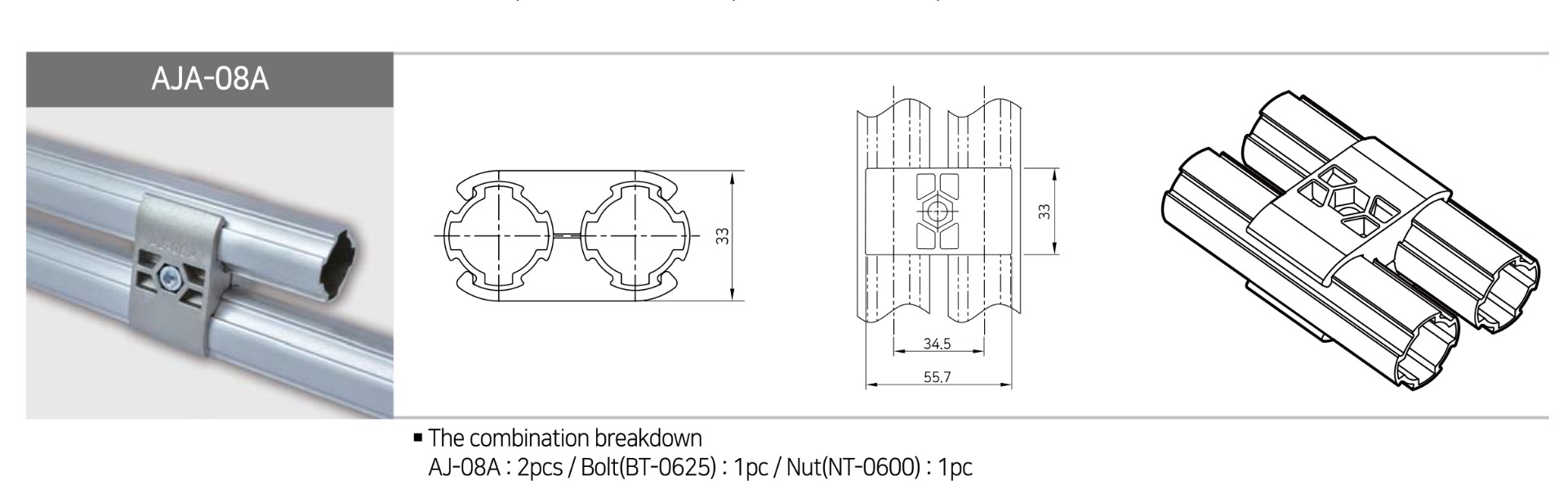 Connettore AJ-08A per tubi in alluminio anodizzato utilizzato per formare AJA-08A