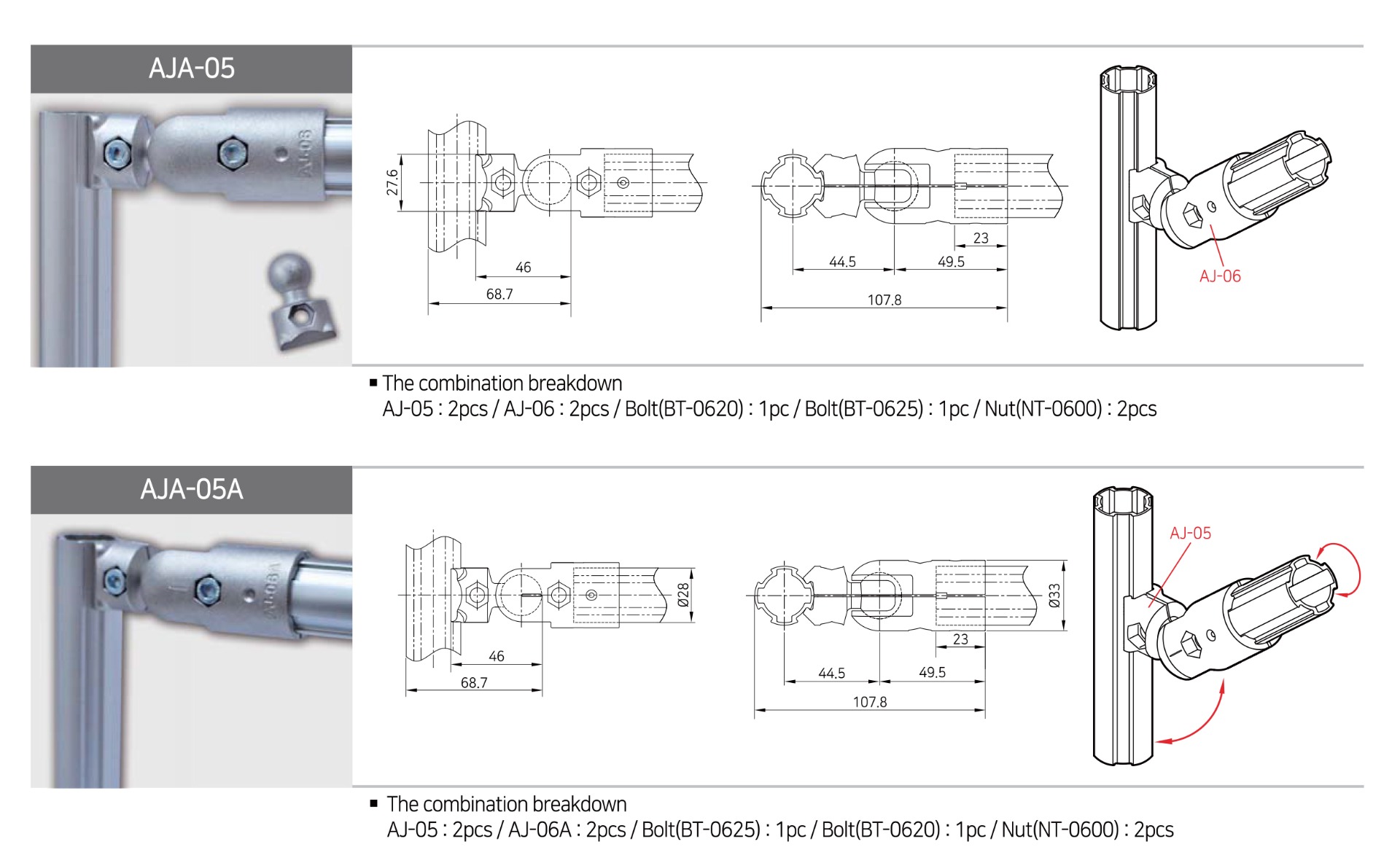 Connettore AJ-05 per tubi in alluminio anodizzato utilizzato per formare AJA-05 e AJA-05A