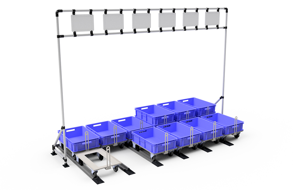 Da un lato della struttura c'è l'addetto all’asservimento delle linee che fornisce quello che serve, nella quantità corretta quando necessario, direttamente sui supermarket in produzione, ritirando le cassette vuote dai livelli di ritorno.