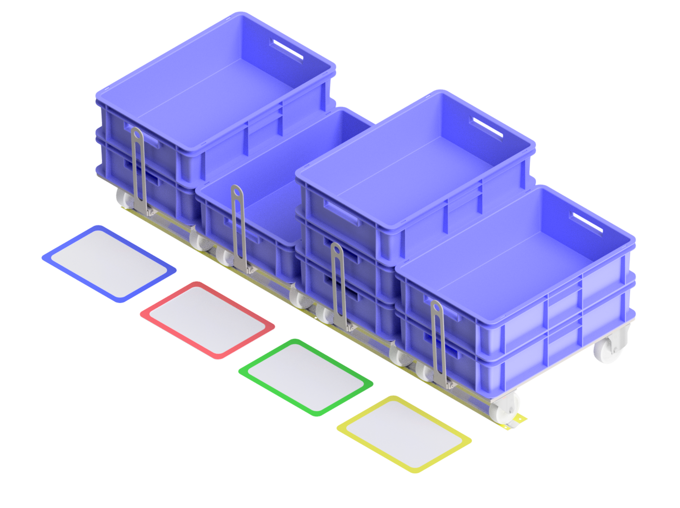 Park station fornito con dimensioni su richiesta, è possibile pertanto avere un posizionamento preciso e sicuro per tutti i carrelli milkrun e Lean.