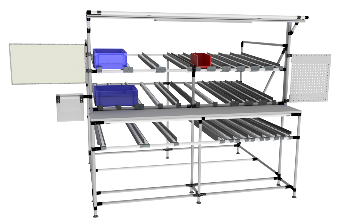 Il banco da lavoro è la parte centrale della postazione, puoi aggiungere accessori utili come supporti per monitor, cassetti, mensole, sistemi di taglio, binario per appendere utensili, prese, accessori IT, illuminazione, ripiani personalizzati, portautensili, pannelli forati, lavagne informative in modo che la produzione manuale possa essere eseguita in modo ottimale.