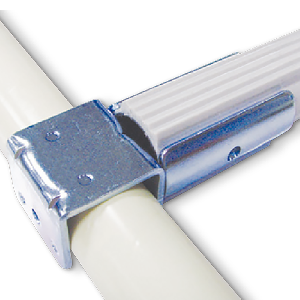 Giunti per tubi di Utek in alluminio, acciaio o plastica, possono collegare tra loro un’ampia gamma di profili tubolari diametro 28 mm ed essere fissati tramite bulloni e dadi.