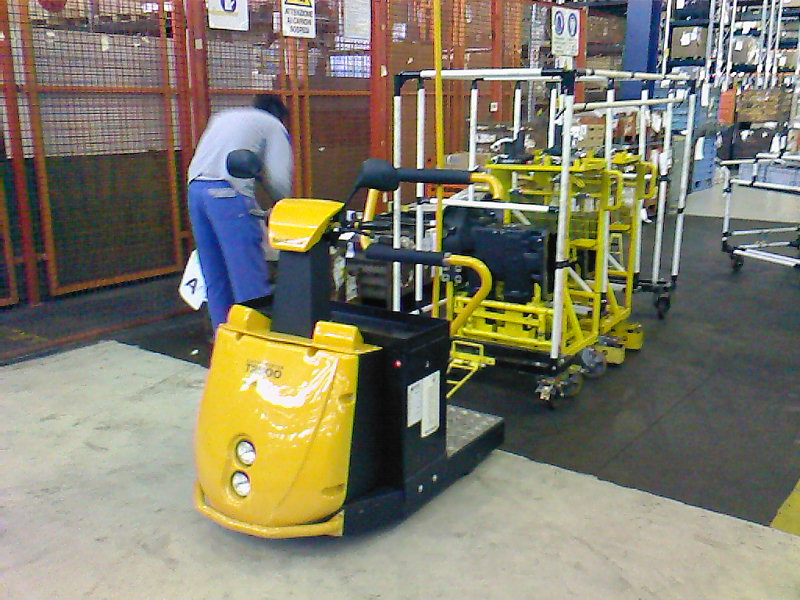 I trattori elettrici trainano carrelli con ripiani per gestire i piccoli contenitori, trolley con pianale per trasportare interi pallet o carrelli dollies per movimentare pile di cassette. Il sistema Milk Run è ottenuto grazie al timone di traino nella parte anteriore del carrello, che crea treni logistici ottimizzati per l'asservimento delle linee.