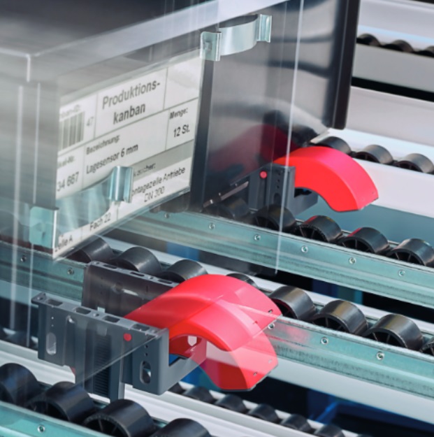 L’ausilio di tecniche di gestione Kanban, nella sua applicazione più moderna E-Kanban, consente all’addetto in produzione di effettuare il riordino del materiale al fornitore non appena viene consumato, semplicemente leggendo il barcode del cartellino presente sulla cassetta KLT in cui è contenuto o con l'applicazione di sensori wireless sulle corsie dello scaffale che si attivano con la rimozione della cassetta e inviano un segnale al sistema di controlle centrale di approvvigionamento, garantendosi la giusta disponibilità di scorta a bordo linea.